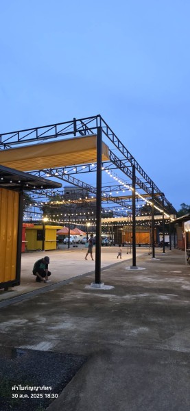 รับติดตั้งหลังคาผ้าใบเลื่อนสไลด์เปิดปิดนิคมเกตเวย์