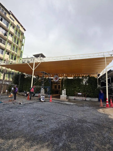 รับติดตั้งผ้าใบกันสาดร้านอาหารพรหมณี งานติดตั้งคุณภาพ รับประกันโครงสร้าง พร้อมบร