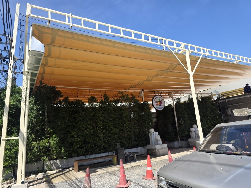 รับติดตั้งผ้าใบกันสาดร้านอาหารแสนภูดาษ ผ้าใบกันสาดหลากหลายแบบ เลือกได้ตามใจคุณ ทั้งสวย ทน ราคาถูก ที่เดียวครบ ผ้าใบหลังคากันสาด.com